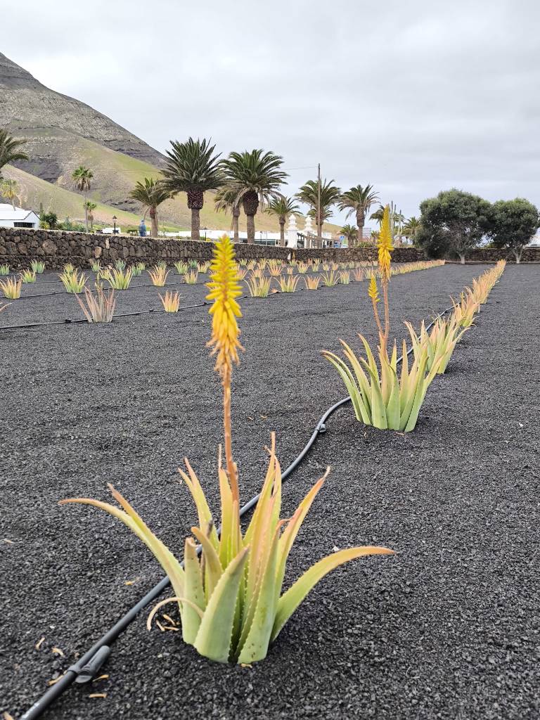 Hoy nos han informado desde Yaiza de que ya están brotando las primeras flores de la plantación de aloe, sembrada hace apenas seis meses.